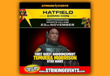 Striking Events have announced Temuera Morrison, Jango Fett in the prequels and Boba Fett in The Mandalorian and The Book of Boba Fett, as the first guest for Hatfield Comic Con taking place on November 23rd, 2025, at Hertfordshire Sports Village, Hatfield.