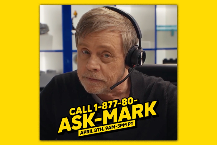 Watch the LEGO Group’s latest employee, Mark Hamill, as Junior Executive Director of Information, or J.E.D.I. for short, and you can call him on April 8th between noon and 8pm ET on 1-877-80-ASK-MARK for answers to all your LEGO Star Wars SMART Play questions.