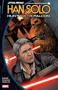 | Han Solo: Hunt for the Falcon (TPB) (Marvel – ISBN 978-1-302-96319-4) In the time before The Force Awakens, where is the Millennium Falcon?! Less than satisfied with a settled life, Han Solo lands on the idea of reclaiming the Falcon and returning to a life of adventure. The problem is, he can’t find it! After enlisting a less than enthusiastic Chewbacca, the duo embarks upon a quest to reclaim the greatest ship in the galaxy. Standing in their way are a laundry list of rogues who have staked a claim to the Millennium Falcon as well — like Ducain, the villainous scoundrel who stole it! COLLECTING: Star Wars: Hunt for the Falcon (2025) #1-5 Available from Amazon UK and Amazon US |
