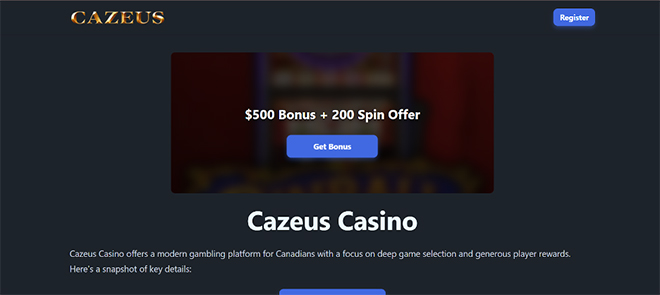 | 1 | Cazeus | 100% up to C$750 + 200 FS | ★★★★★ | Claim Now |